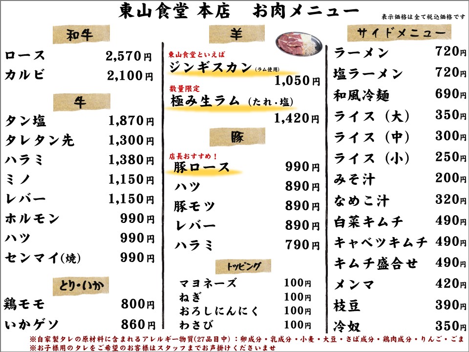 焼肉 東山食堂 本店